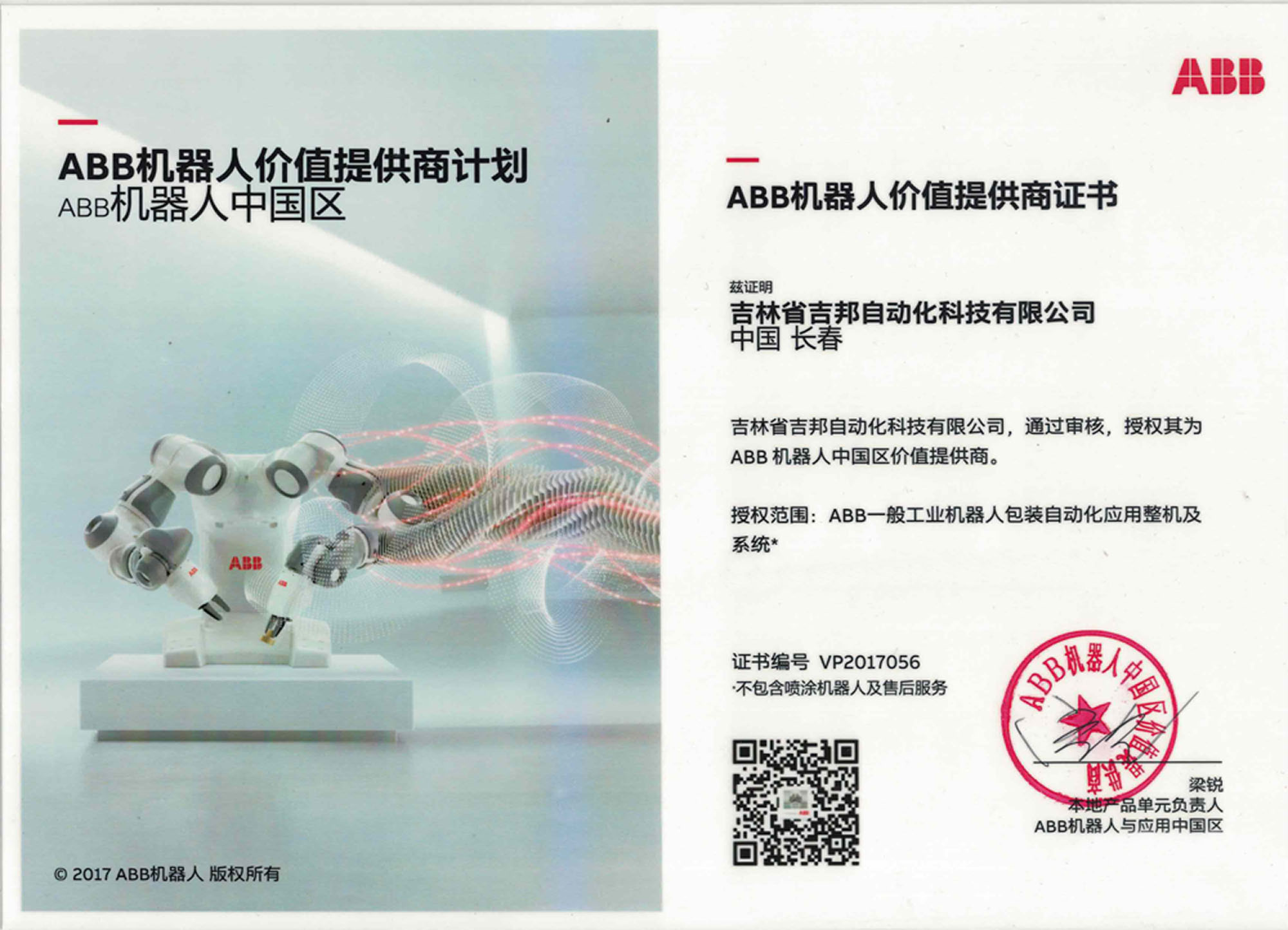 UR機(jī)器人經(jīng)銷商證書